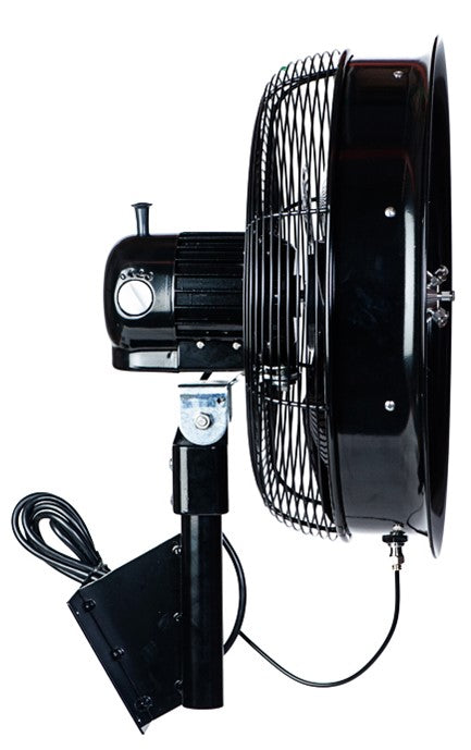 For applications where portability is required, we have various options. Our Cool Caddie Portable Misting fan is a commercial grade self-contained unit featuring a 15 gallon water tank and integrated high pressure pump. It can also be hooked up to a garden hose for continuous filling of the tank. A shut off valve inside will keep the tank from over filling. These are available in 18” and 24” models. For larger industrial applications we have our Mega Mist XL Portable Oscillating Misting Fan. This is a high-performance misting system built for large-scale outdoor and industrial cooling. With a totally enclosed 1/2 HP motor, rugged polyethylene housing, and powder-coated steel guards, this fan delivers 12,000 CFM of airflow and mist coverage up to 1,750 square feet. Included is a commercial grade 1000 psi misting pump. A stainless steel mist ring with 12 high-pressure nozzles creates ultra-fine mist, while 90° oscillation ensures even distribution across patios, warehouses, barns, sporting and event spaces. Its reach of up to 75 feet makes it ideal for wide-area cooling with minimal setup. The XL includes a heavy-duty base with locking wheels and connects directly to the included 1000 PSI pump for plug-and-play operation. Whether portable or wall-mounted, this fan is your go-to for powerful, durable, and dependable mist cooling for large areas.
