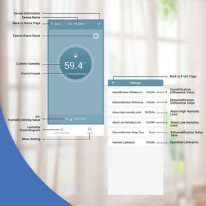 •  Alarm when humidity exceeds high/low humidity setting value; Alarm when sensor error or humidity exceeds limit. Delay protection for output.