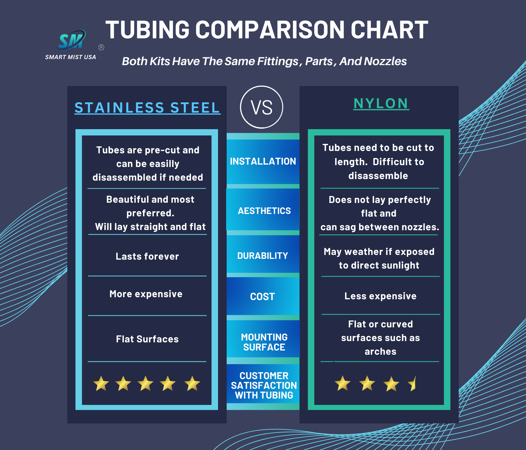 Works great in the high desert of Southern New Mexico. No surface wetting even on a humid day. Buy the stainless option. App is easy-to-use. My layout was a little tricky to install but if you can use a ladder and small hand tools you are good to go. I am glad I spent extra money for a high quality system.